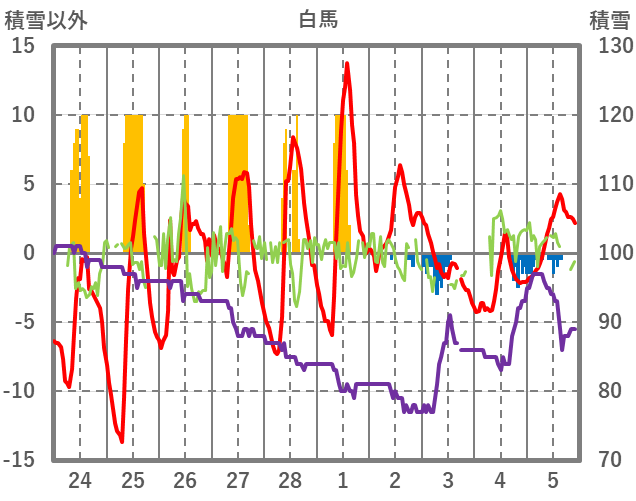 | 日 | 時 | 気温 | 降水 | 風向/風速 | 日照 | 積雪 | 降雪 |