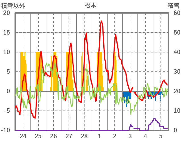 | 日 | 時 | 気温 | 降水 | 風向/風速 | 日照 | 積雪 | 降雪 |