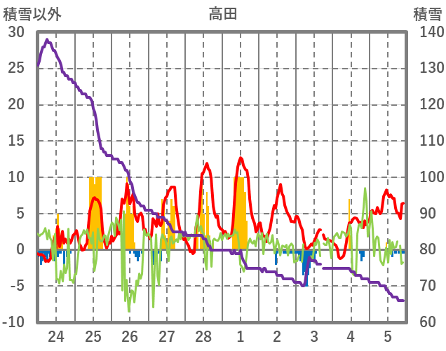 | 日 | 時 | 気温 | 降水 | 風向/風速 | 日照 | 積雪 | 降雪 |