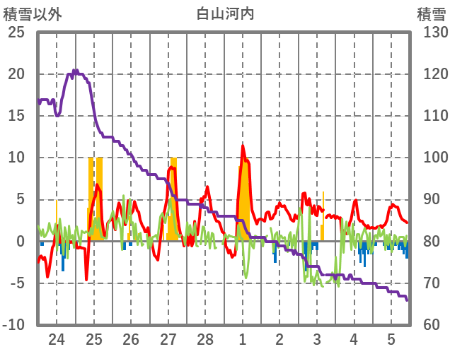 | 日 | 時 | 気温 | 降水 | 風向/風速 | 日照 | 積雪 | 降雪 |