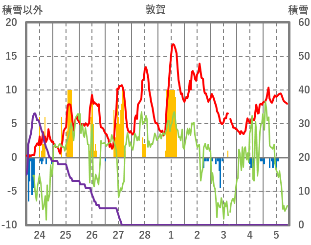 | 日 | 時 | 気温 | 降水 | 風向/風速 | 日照 | 積雪 | 降雪 |