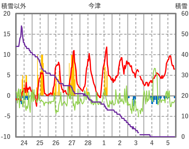 | 日 | 時 | 気温 | 降水 | 風向/風速 | 日照 | 積雪 | 降雪 |