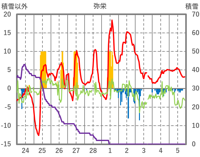 | 日 | 時 | 気温 | 降水 | 風向/風速 | 日照 | 積雪 | 降雪 |