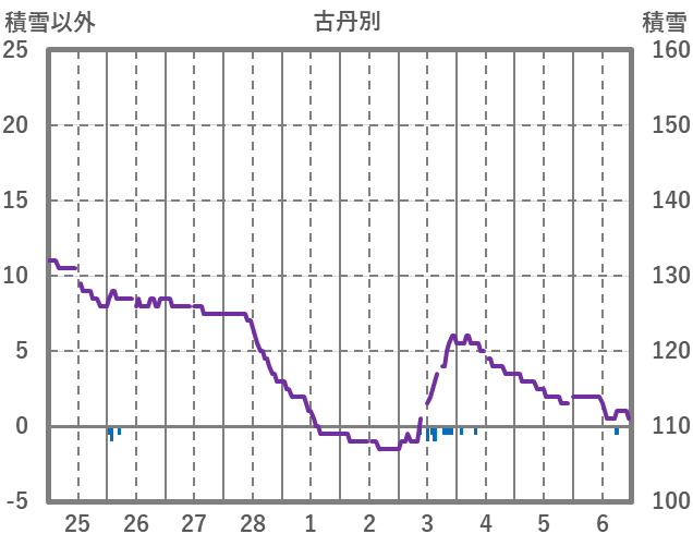 | 日 | 時 | 気温 | 降水 | 風向/風速 | 日照 | 積雪 | 降雪 |