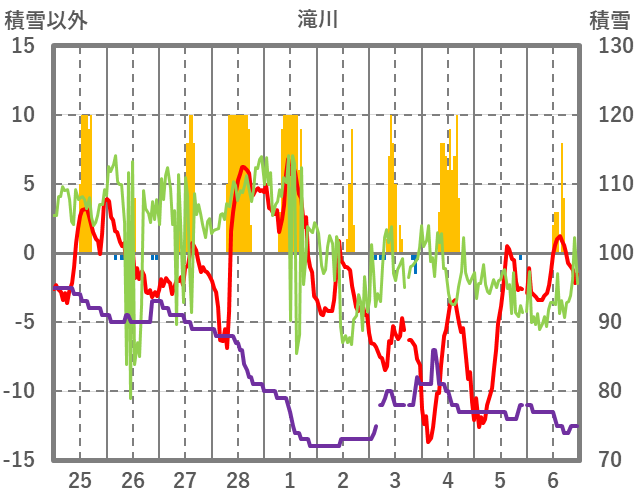 | 日 | 時 | 気温 | 降水 | 風向/風速 | 日照 | 積雪 | 降雪 |