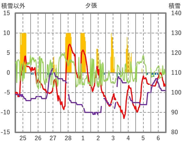 | 日 | 時 | 気温 | 降水 | 風向/風速 | 日照 | 積雪 | 降雪 |