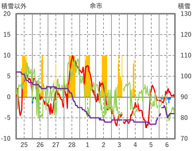 | 日 | 時 | 気温 | 降水 | 風向/風速 | 日照 | 積雪 | 降雪 |