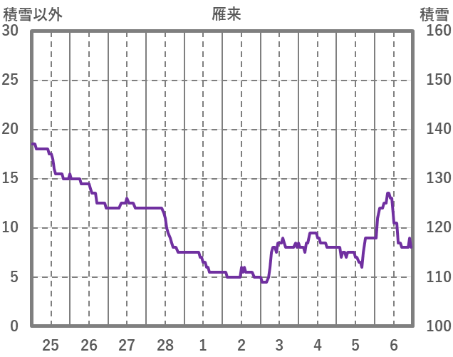 | 日 | 時 | 気温 | 降水 | 風向/風速 | 日照 | 積雪 | 降雪 |