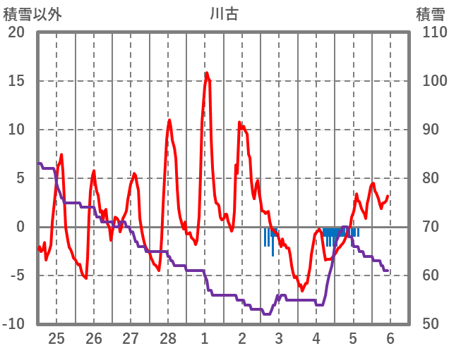 | 日 | 時 | 気温 | 降水 | 風向/風速 | 日照 | 積雪 | 降雪 |