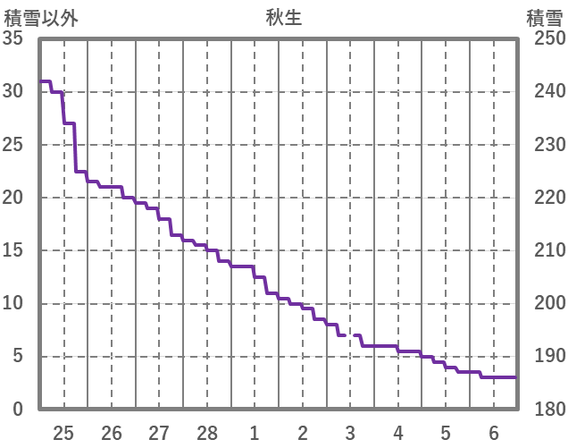 | 日 | 時 | 気温 | 降水 | 風向/風速 | 日照 | 積雪 | 降雪 |