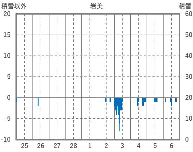 | 日 | 時 | 気温 | 降水 | 風向/風速 | 日照 | 積雪 | 降雪 |