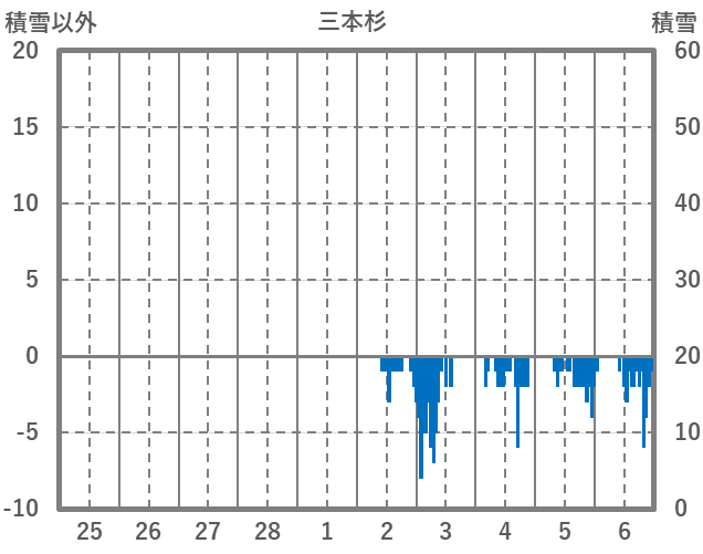 | 日 | 時 | 気温 | 降水 | 風向/風速 | 日照 | 積雪 | 降雪 |