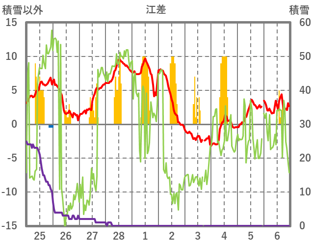 | 日 | 時 | 気温 | 降水 | 風向/風速 | 日照 | 積雪 | 降雪 |