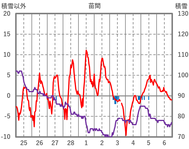 | 日 | 時 | 気温 | 降水 | 風向/風速 | 日照 | 積雪 | 降雪 |