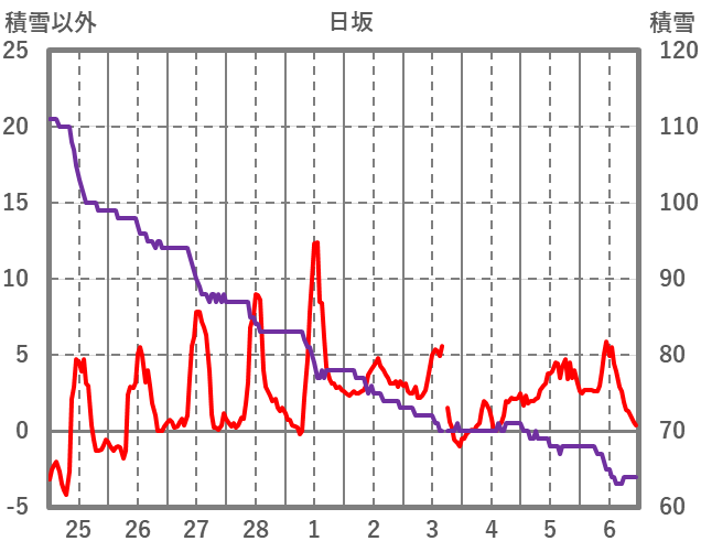 | 日 | 時 | 気温 | 降水 | 風向/風速 | 日照 | 積雪 | 降雪 |