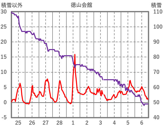 | 日 | 時 | 気温 | 降水 | 風向/風速 | 日照 | 積雪 | 降雪 |