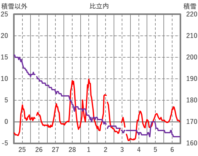 | 日 | 時 | 気温 | 降水 | 風向/風速 | 日照 | 積雪 | 降雪 |