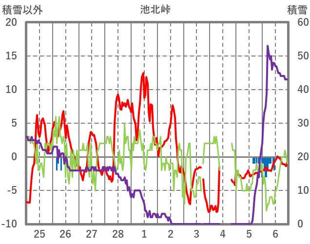 | 日 | 時 | 気温 | 降水 | 風向/風速 | 日照 | 積雪 | 降雪 |
