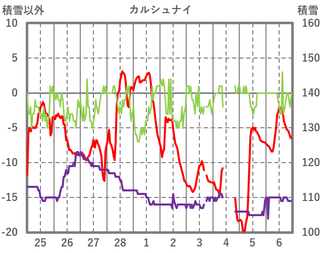 | 日 | 時 | 気温 | 降水 | 風向/風速 | 日照 | 積雪 | 降雪 |