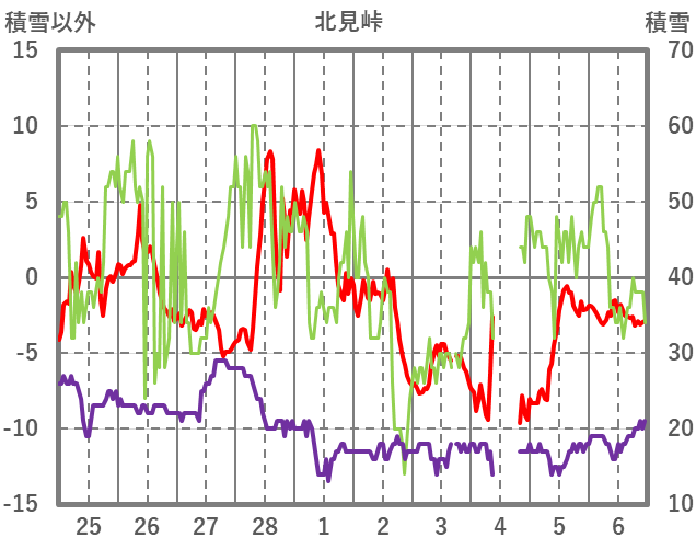 | 日 | 時 | 気温 | 降水 | 風向/風速 | 日照 | 積雪 | 降雪 |