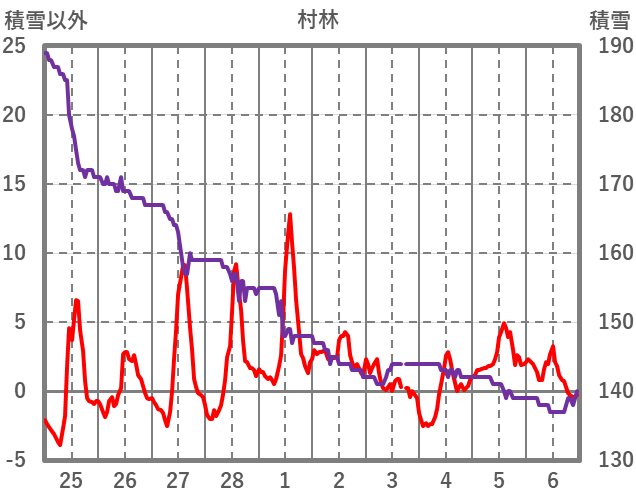| 日 | 時 | 気温 | 降水 | 風向/風速 | 日照 | 積雪 | 降雪 |