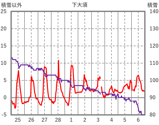 | 日 | 時 | 気温 | 降水 | 風向/風速 | 日照 | 積雪 | 降雪 |