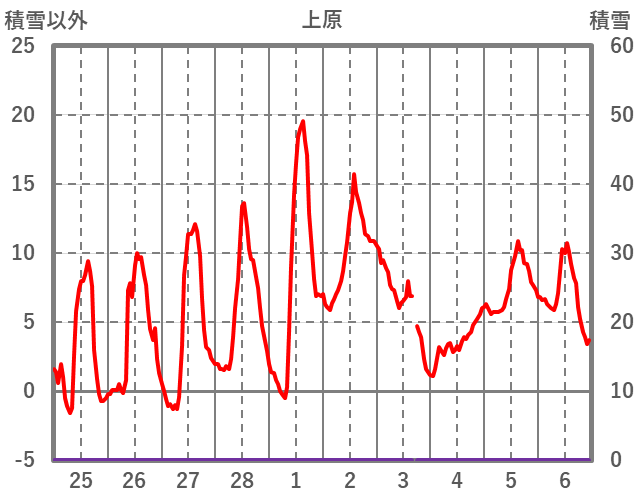 | 日 | 時 | 気温 | 降水 | 風向/風速 | 日照 | 積雪 | 降雪 |