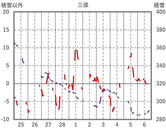 | 日 | 時 | 気温 | 降水 | 風向/風速 | 日照 | 積雪 | 降雪 |