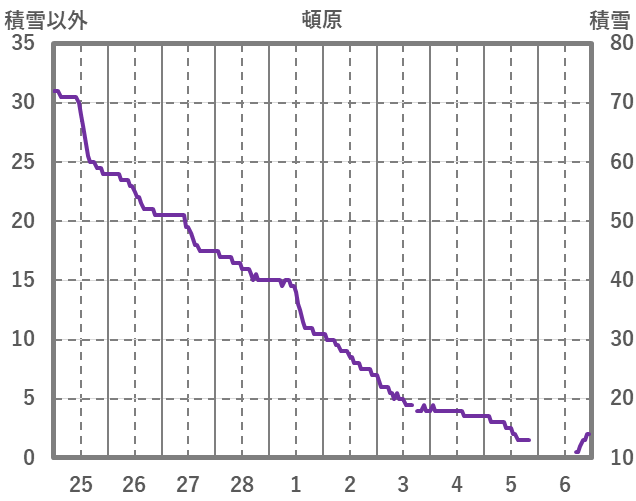 | 日 | 時 | 気温 | 降水 | 風向/風速 | 日照 | 積雪 | 降雪 |