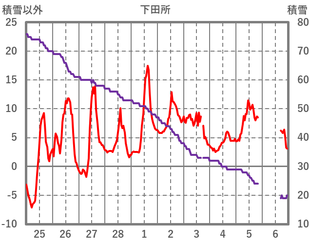 | 日 | 時 | 気温 | 降水 | 風向/風速 | 日照 | 積雪 | 降雪 |