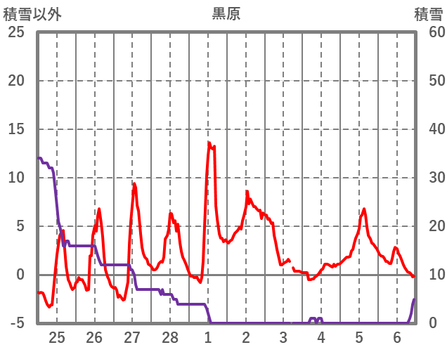 | 日 | 時 | 気温 | 降水 | 風向/風速 | 日照 | 積雪 | 降雪 |