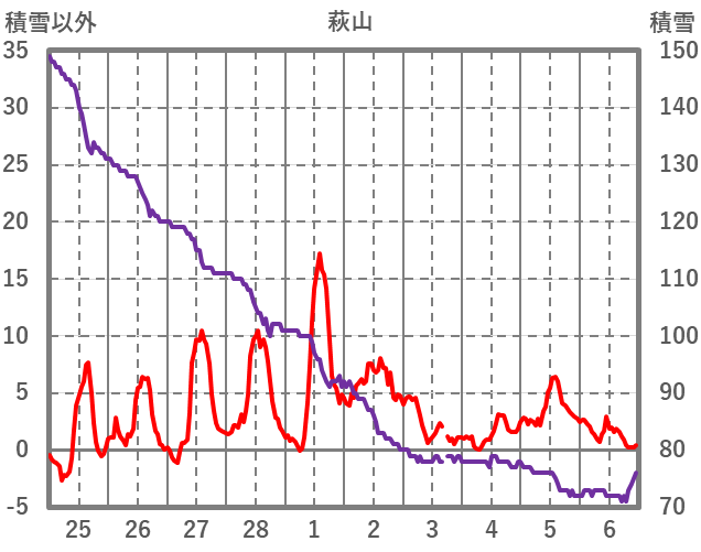 | 日 | 時 | 気温 | 降水 | 風向/風速 | 日照 | 積雪 | 降雪 |