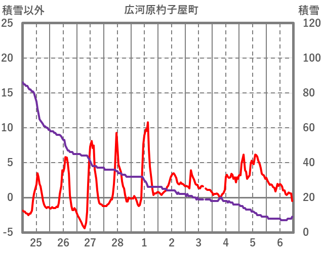 | 日 | 時 | 気温 | 降水 | 風向/風速 | 日照 | 積雪 | 降雪 |