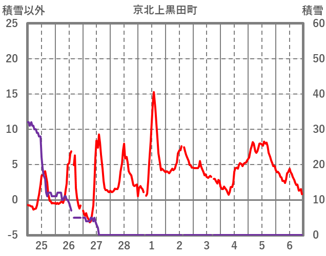 | 日 | 時 | 気温 | 降水 | 風向/風速 | 日照 | 積雪 | 降雪 |