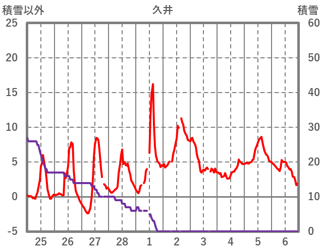 | 日 | 時 | 気温 | 降水 | 風向/風速 | 日照 | 積雪 | 降雪 |