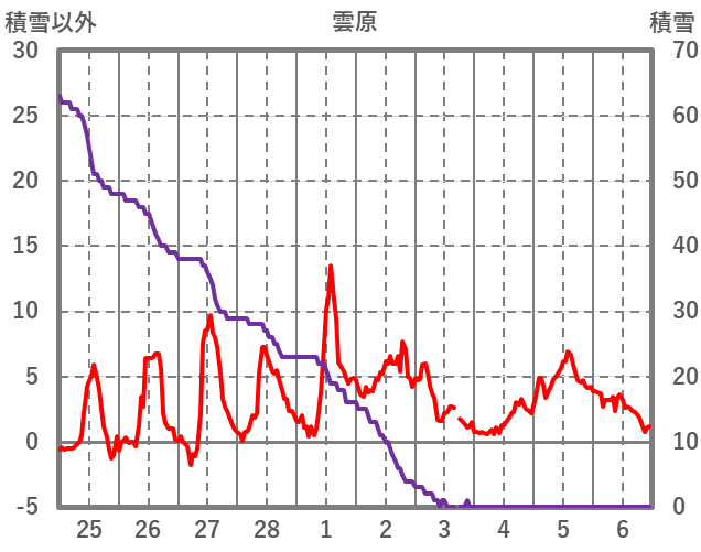 | 日 | 時 | 気温 | 降水 | 風向/風速 | 日照 | 積雪 | 降雪 |
