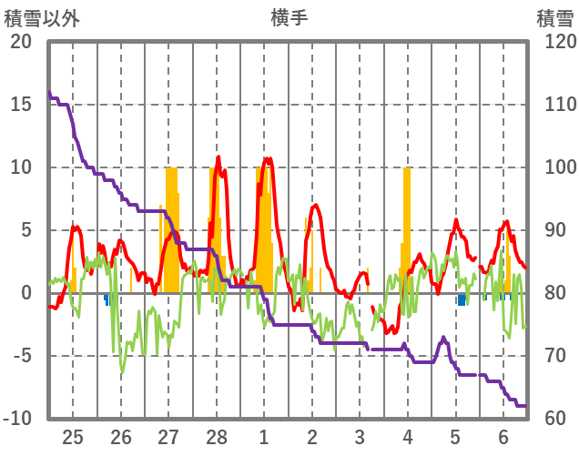 | 日 | 時 | 気温 | 降水 | 風向/風速 | 日照 | 積雪 | 降雪 |