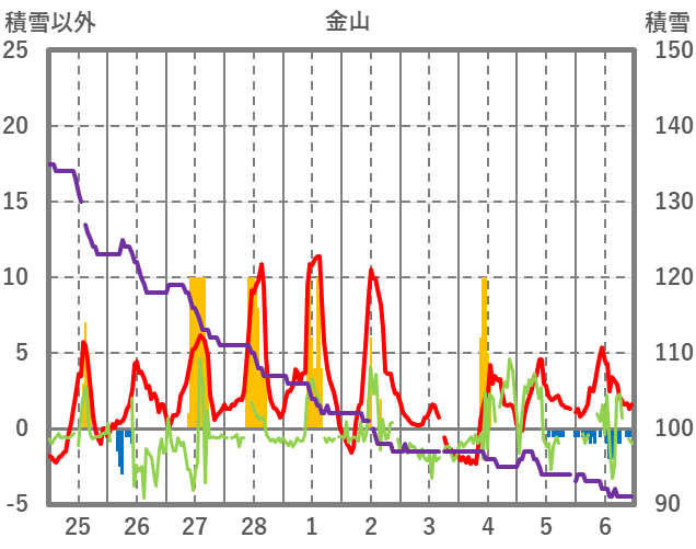 | 日 | 時 | 気温 | 降水 | 風向/風速 | 日照 | 積雪 | 降雪 |