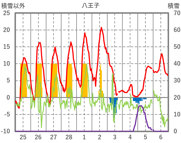 | 日 | 時 | 気温 | 降水 | 風向/風速 | 日照 | 積雪 | 降雪 |