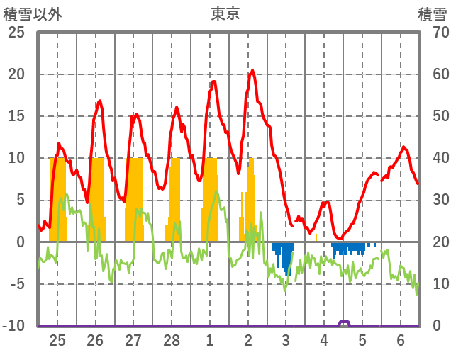 | 日 | 時 | 気温 | 降水 | 風向/風速 | 日照 | 積雪 | 降雪 |
