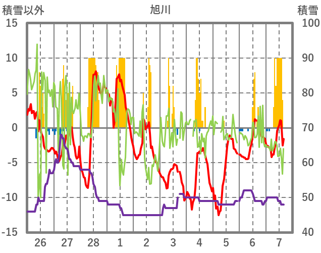 | 日 | 時 | 気温 | 降水 | 風向/風速 | 日照 | 積雪 | 降雪 |