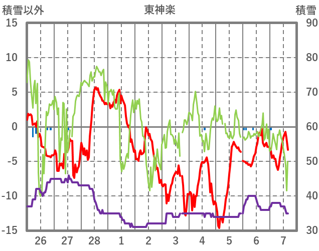 | 日 | 時 | 気温 | 降水 | 風向/風速 | 日照 | 積雪 | 降雪 |