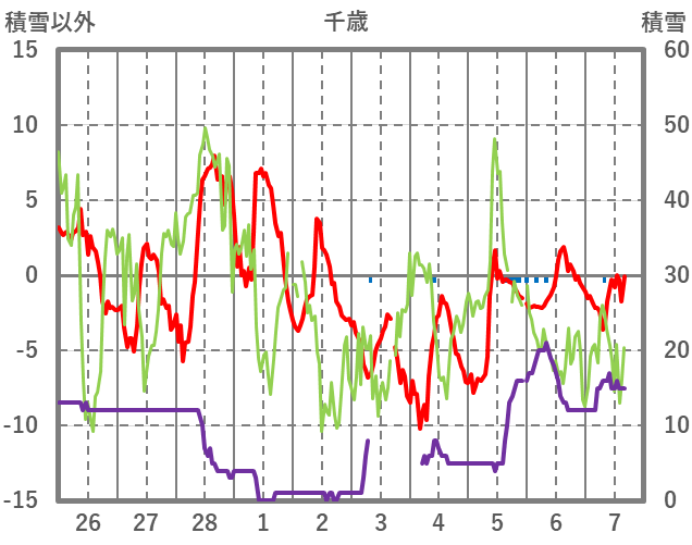 | 日 | 時 | 気温 | 降水 | 風向/風速 | 日照 | 積雪 | 降雪 |