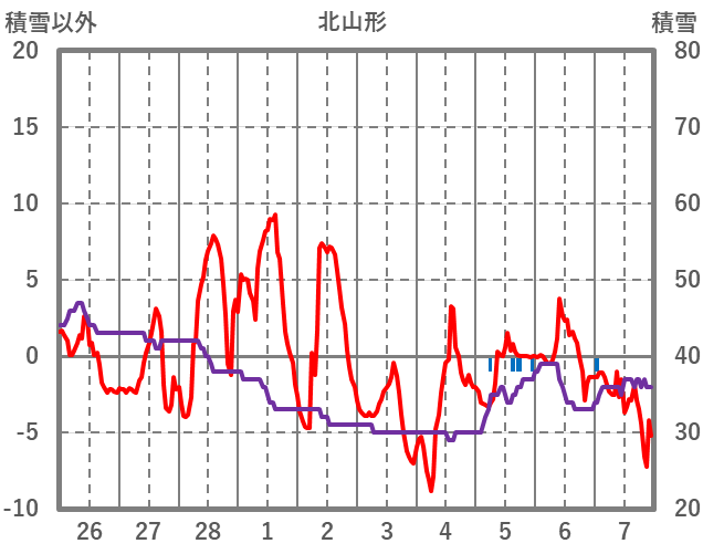 | 日 | 時 | 気温 | 降水 | 風向/風速 | 日照 | 積雪 | 降雪 |
