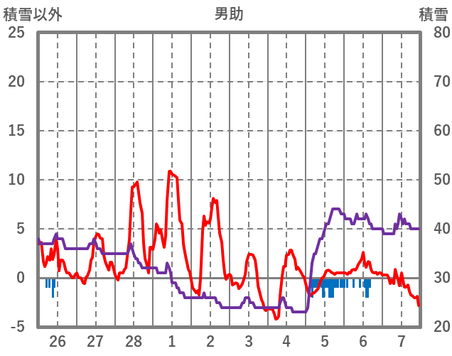 | 日 | 時 | 気温 | 降水 | 風向/風速 | 日照 | 積雪 | 降雪 |