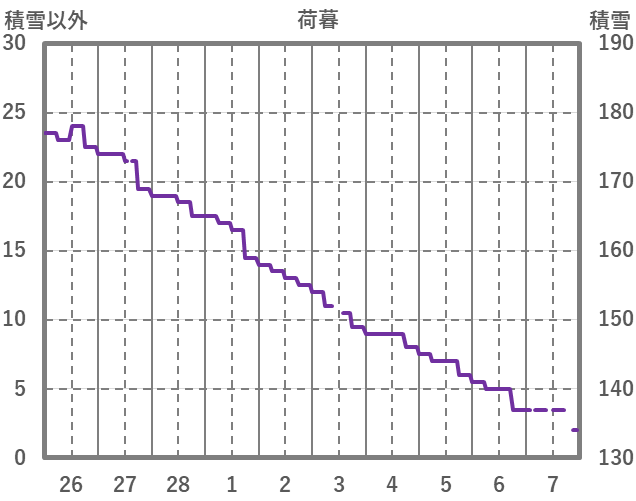 | 日 | 時 | 気温 | 降水 | 風向/風速 | 日照 | 積雪 | 降雪 |