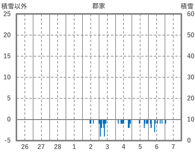 | 日 | 時 | 気温 | 降水 | 風向/風速 | 日照 | 積雪 | 降雪 |