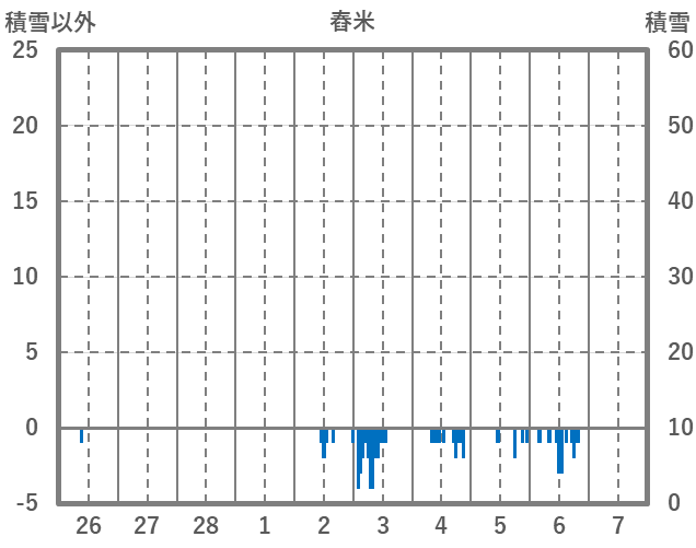 | 日 | 時 | 気温 | 降水 | 風向/風速 | 日照 | 積雪 | 降雪 |
