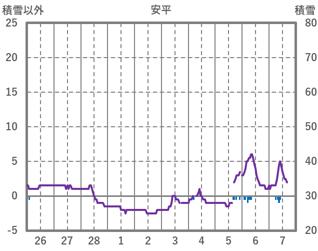 | 日 | 時 | 気温 | 降水 | 風向/風速 | 日照 | 積雪 | 降雪 |