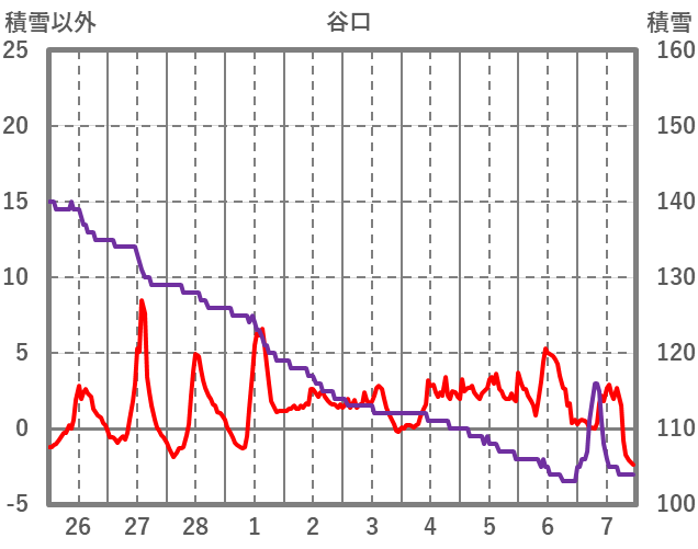 | 日 | 時 | 気温 | 降水 | 風向/風速 | 日照 | 積雪 | 降雪 |